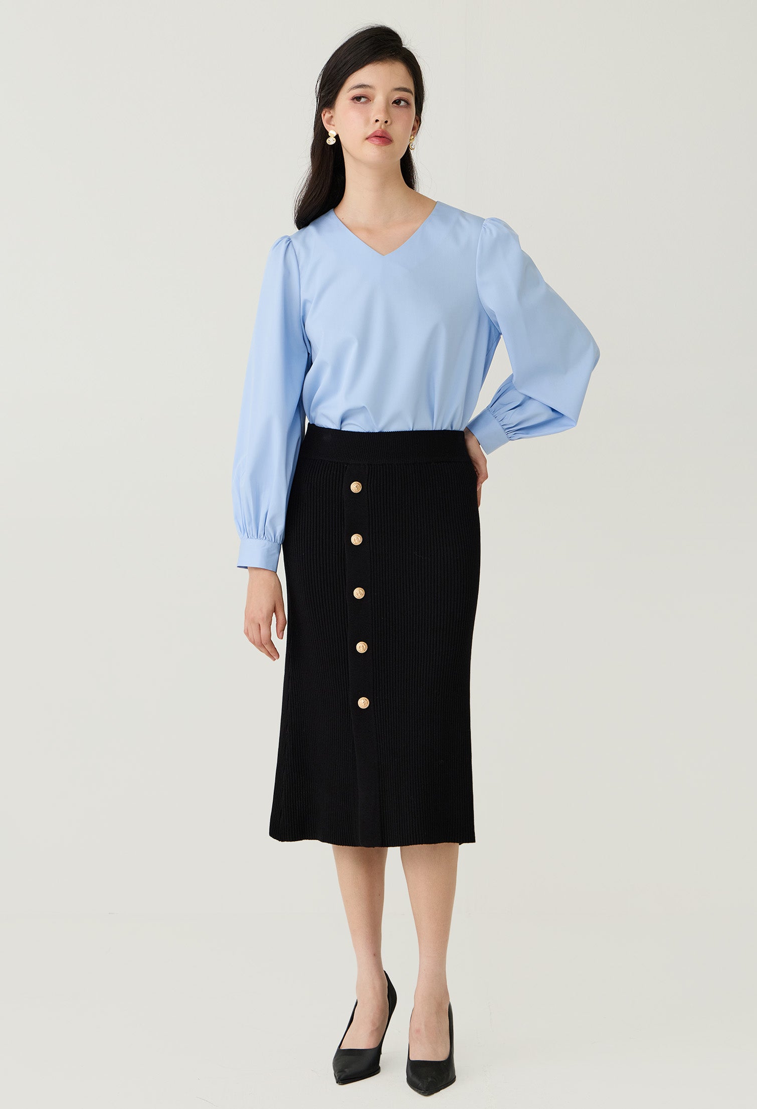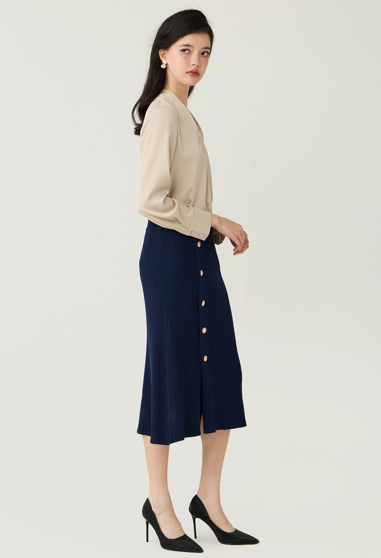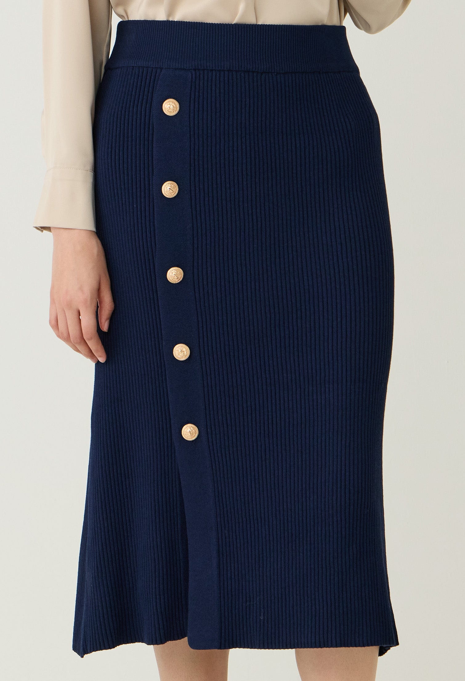 Home New Arrivals Buttons Ribbed Knitted Midi Skirt