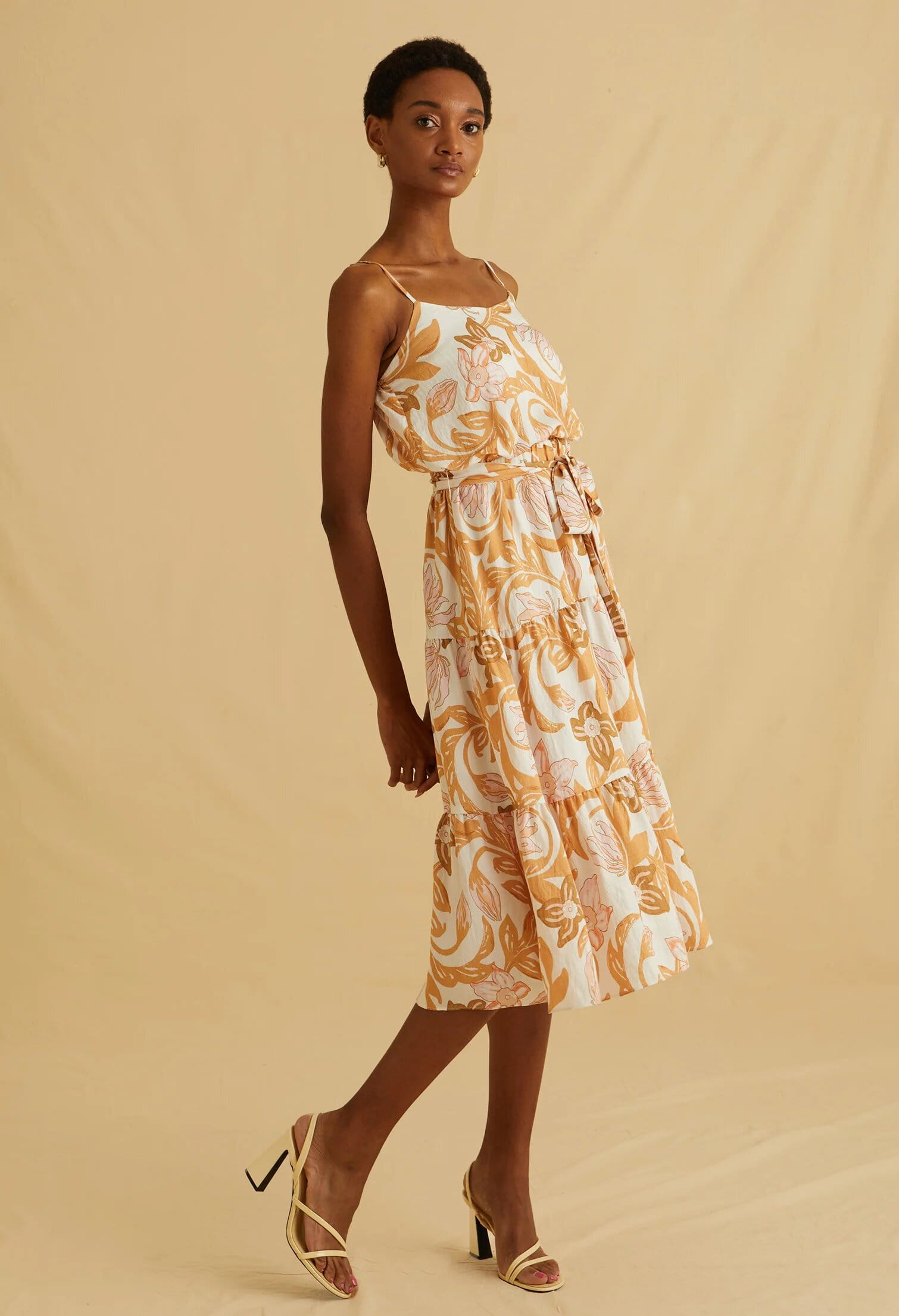 Vacay Leaf Motif Tunic Tie-waist Dress
