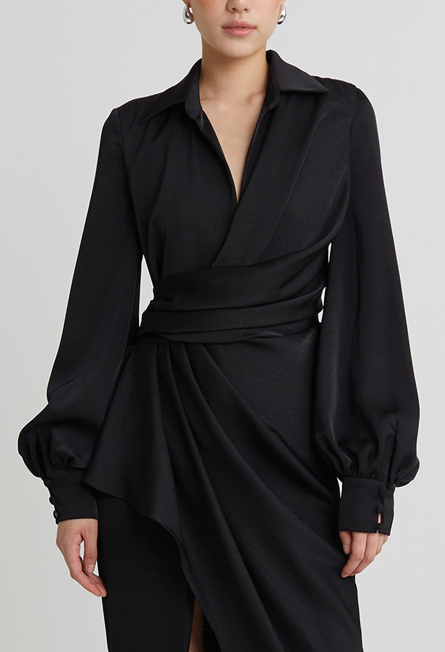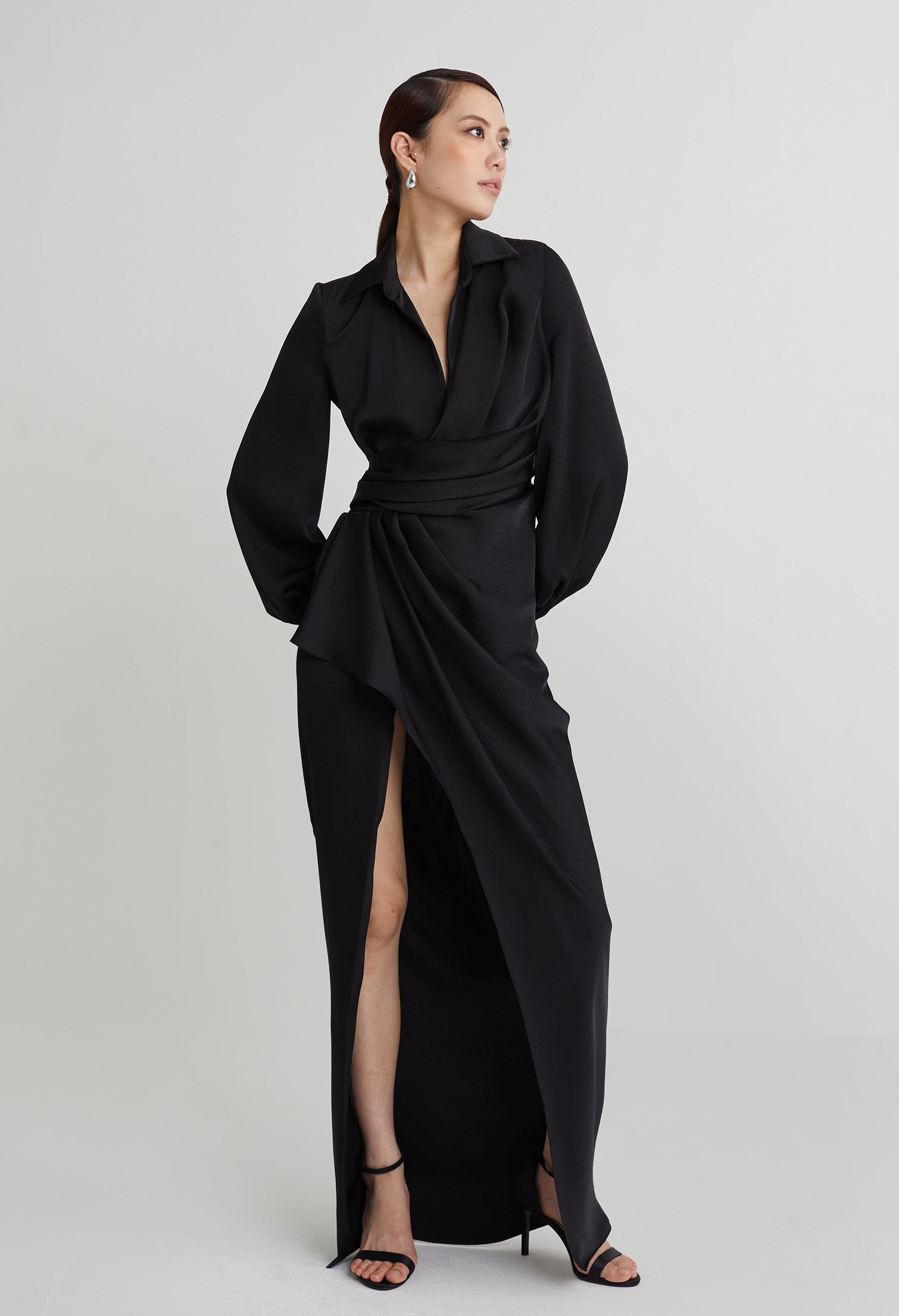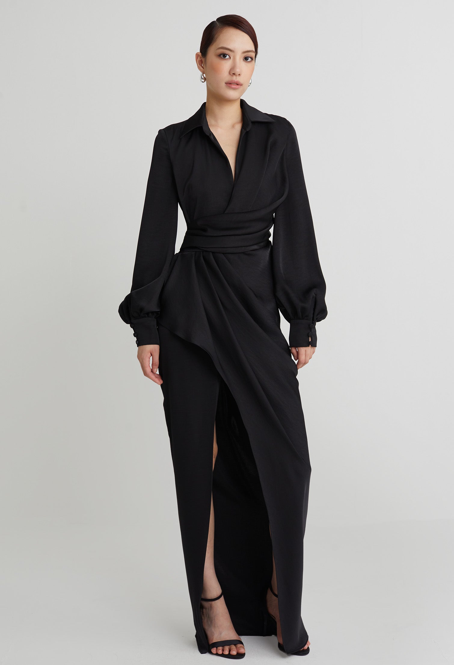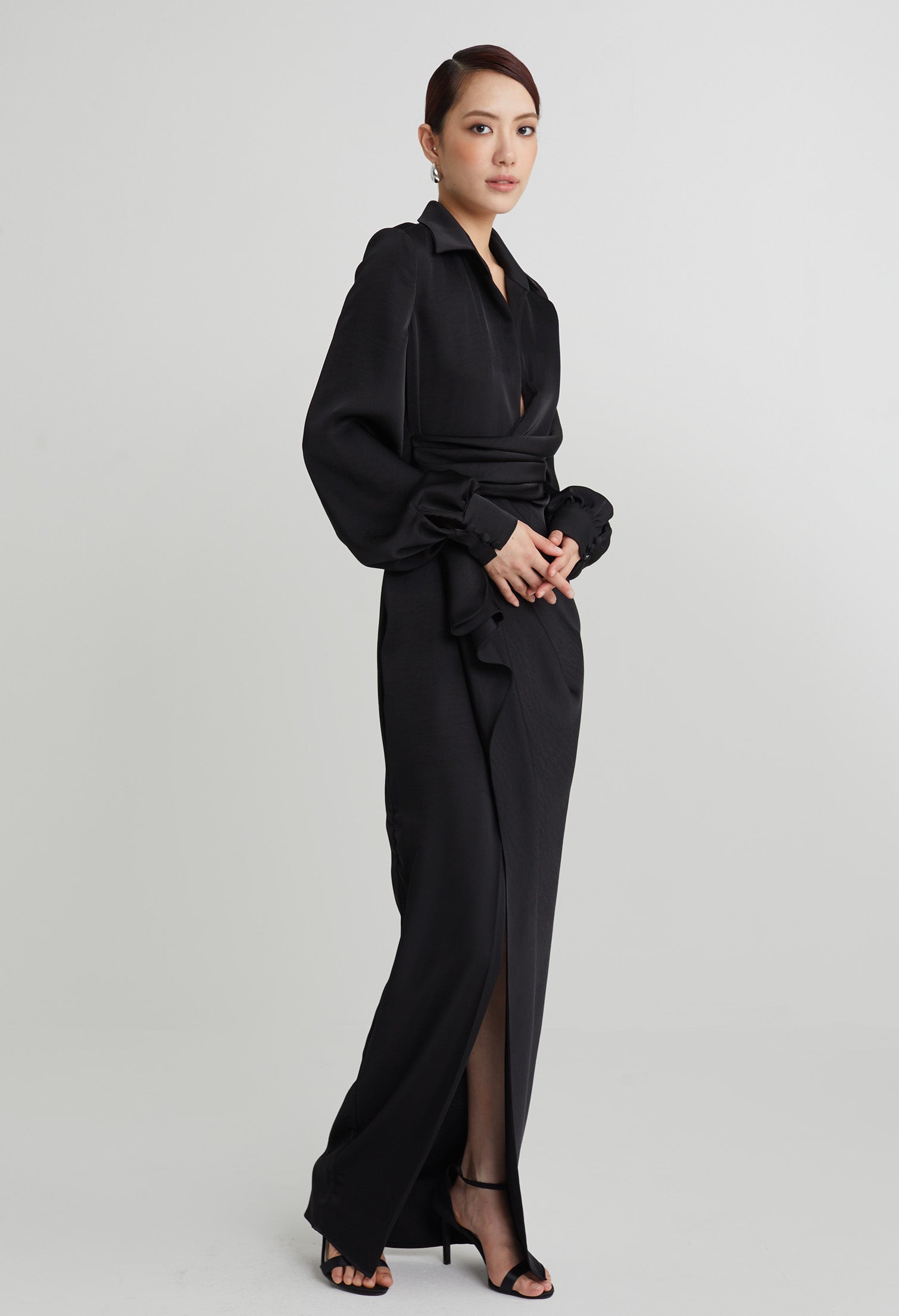 nichii X NURITA HARITH Draped 3-Button Cuff Sleeves Maxi Dress