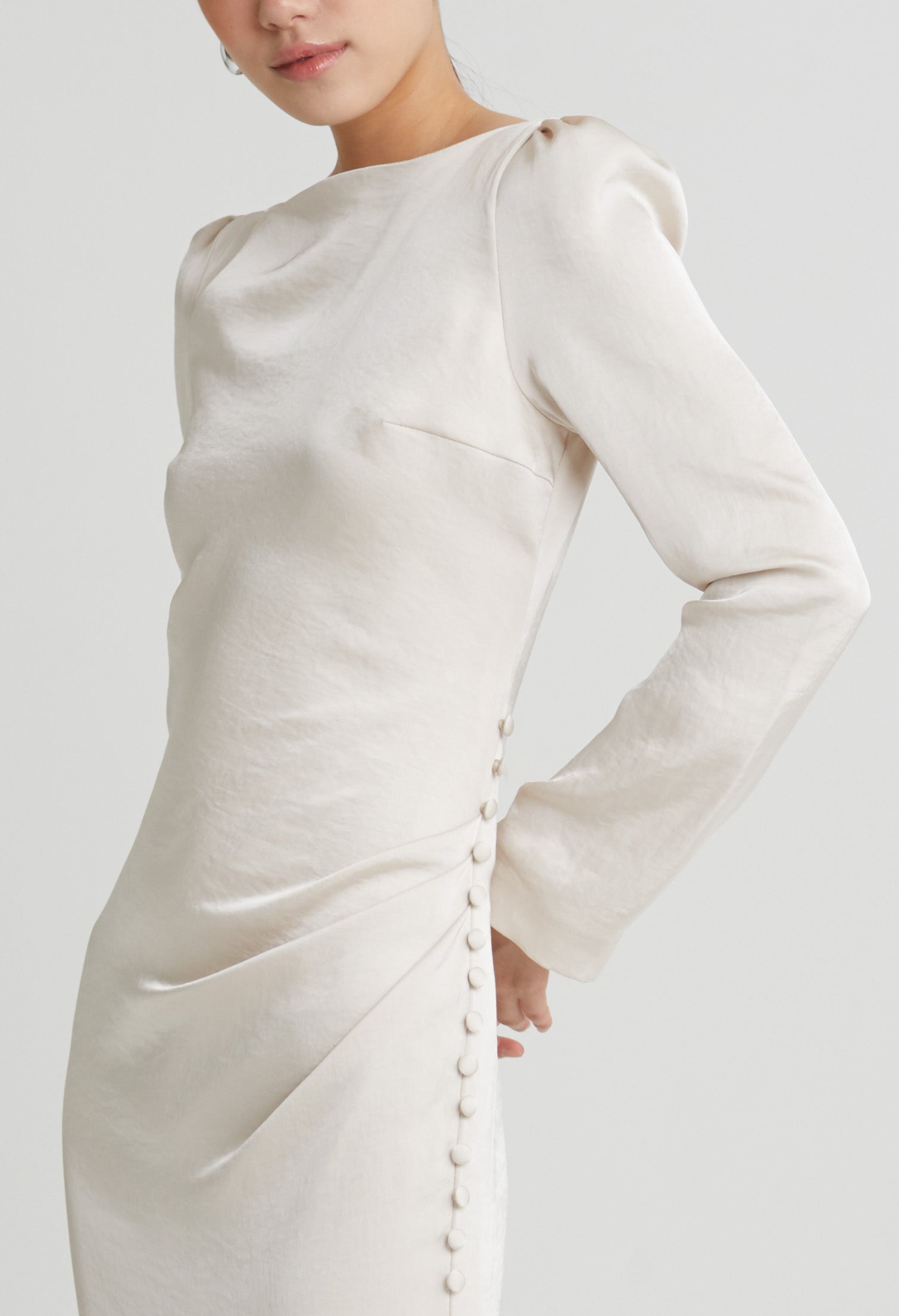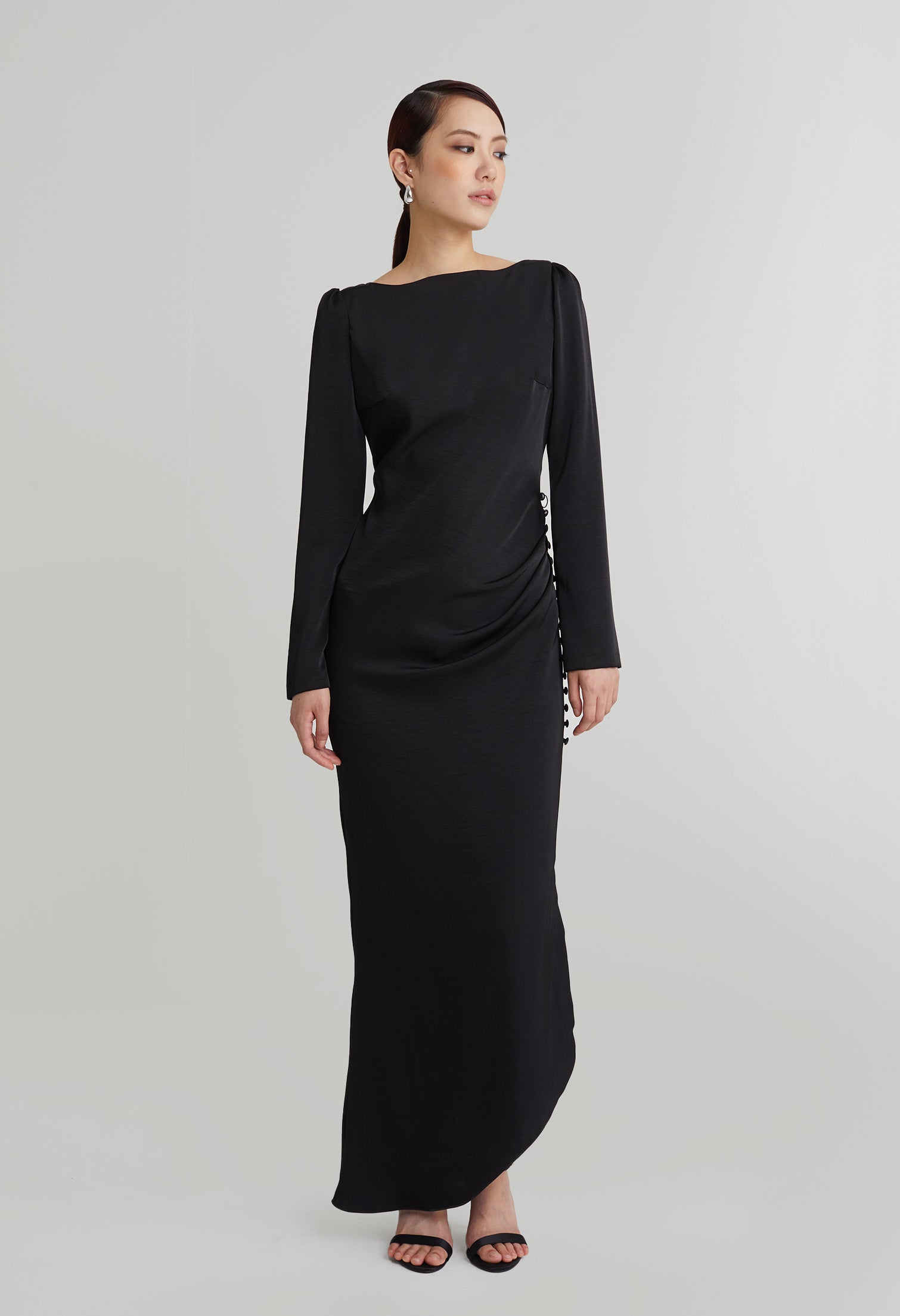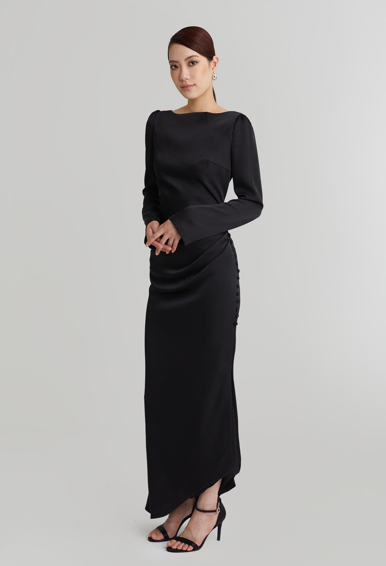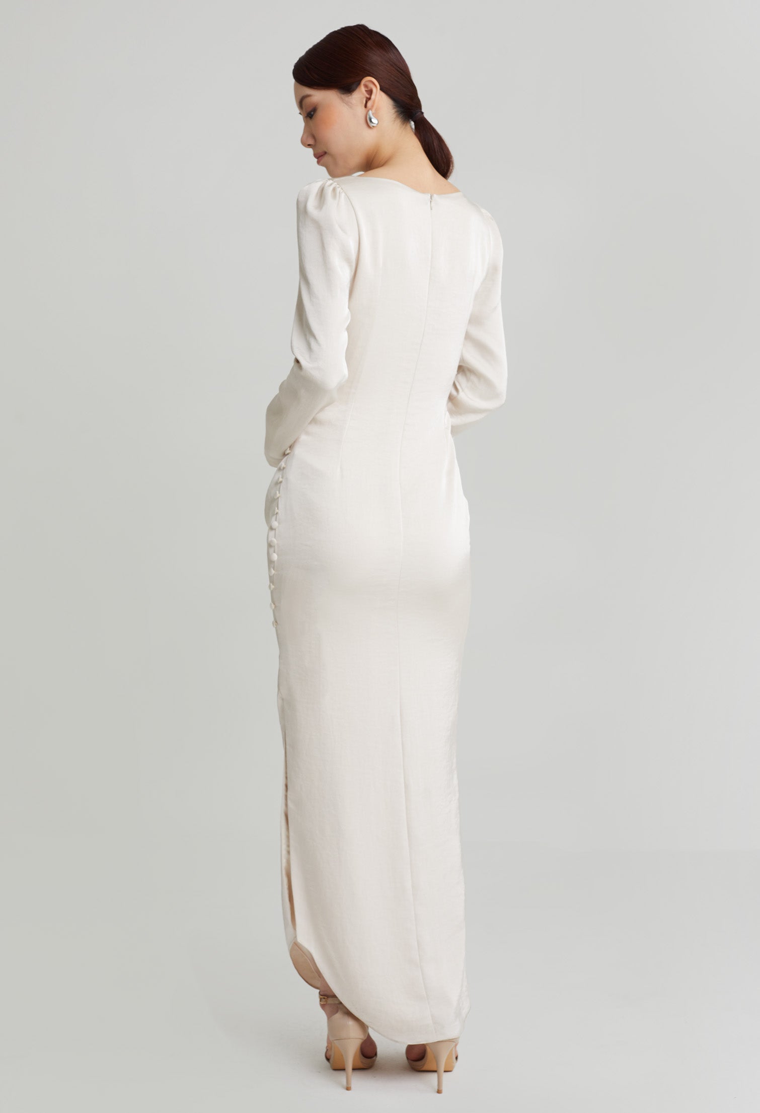 nichii X NURITA HARITH Draped 3-Button Cuff Sleeves Maxi Dress 653,900 Ks Original price was: 653,900 Ks.457,730 KsCurrent price is: 457,730 Ks.
