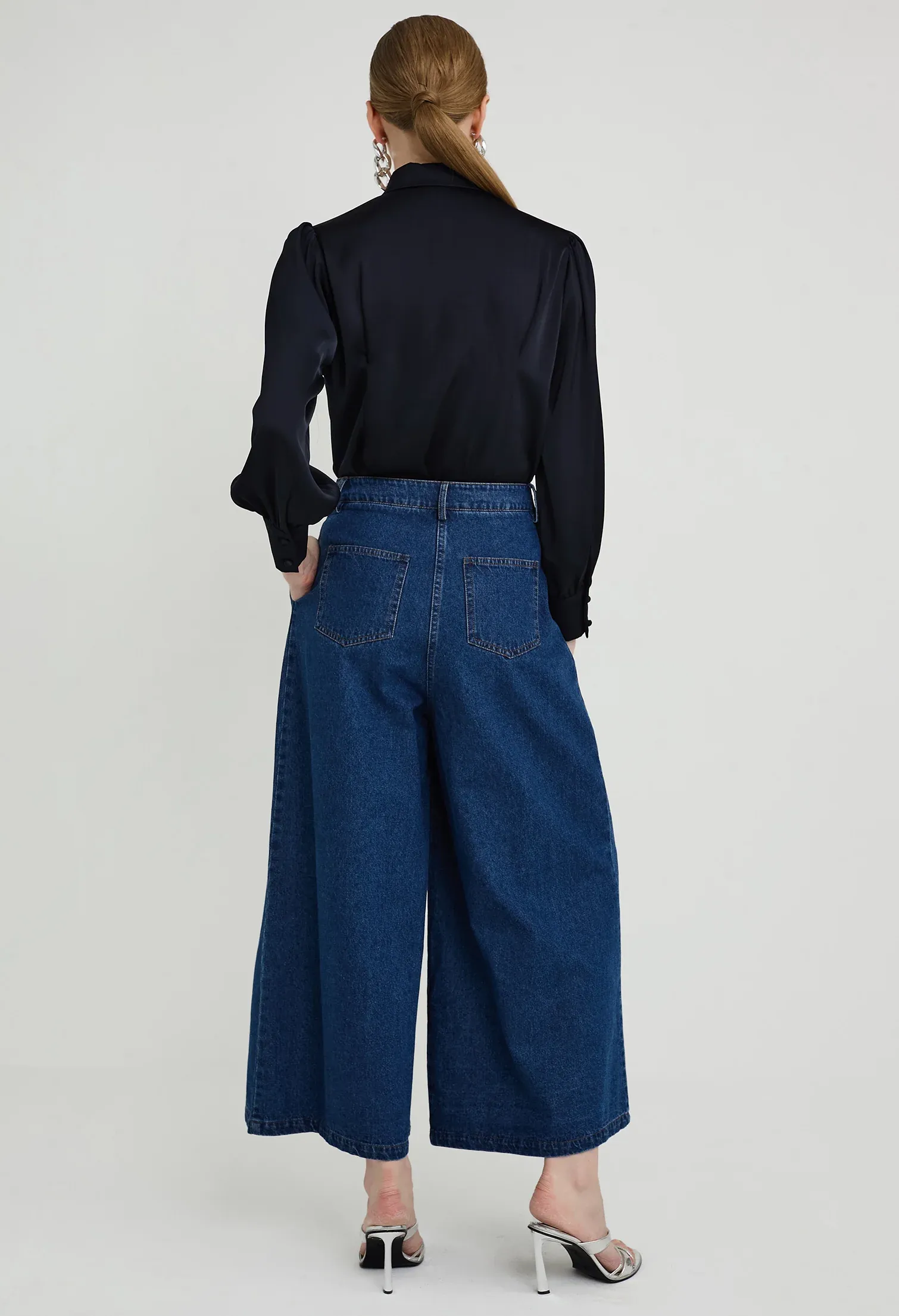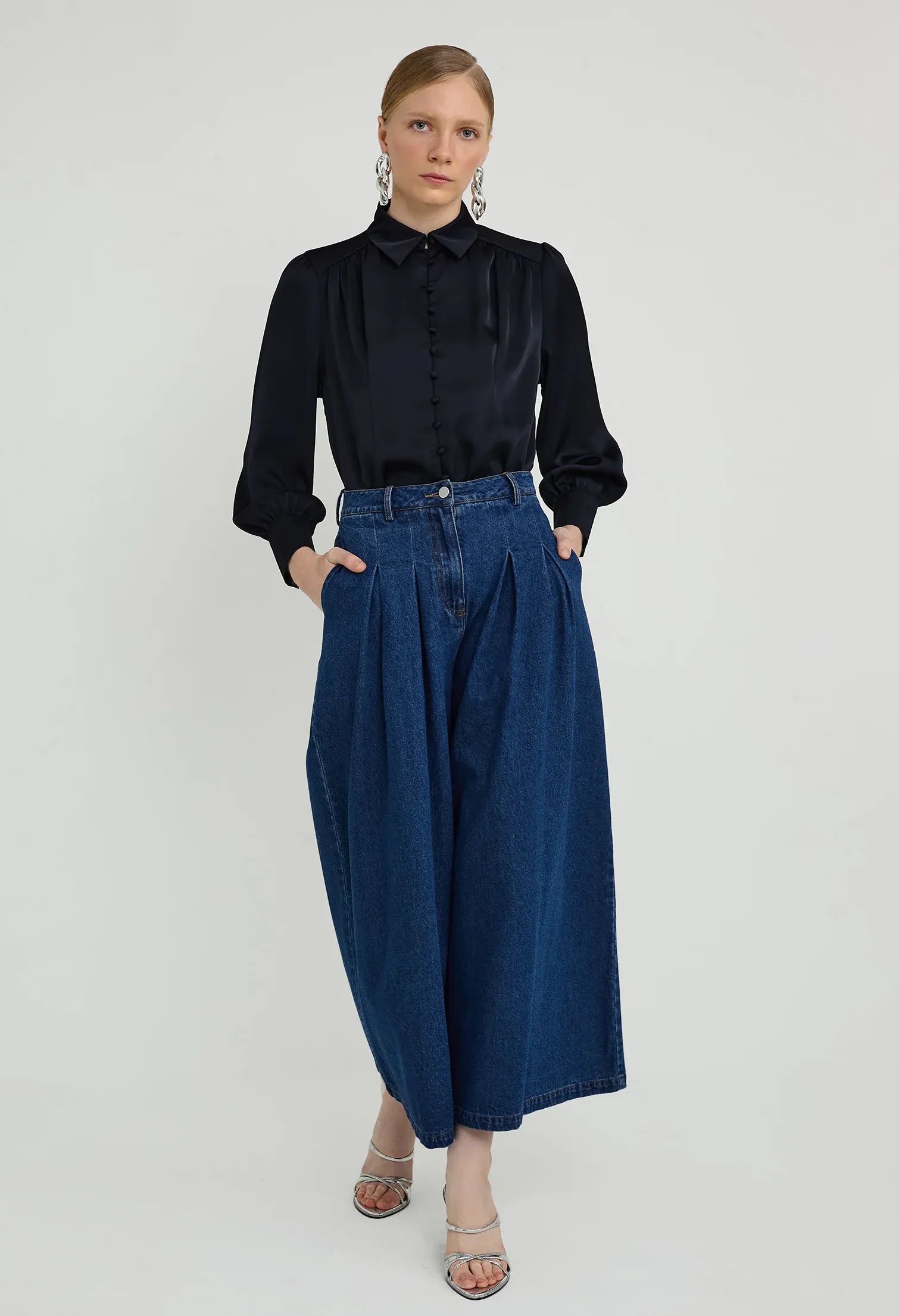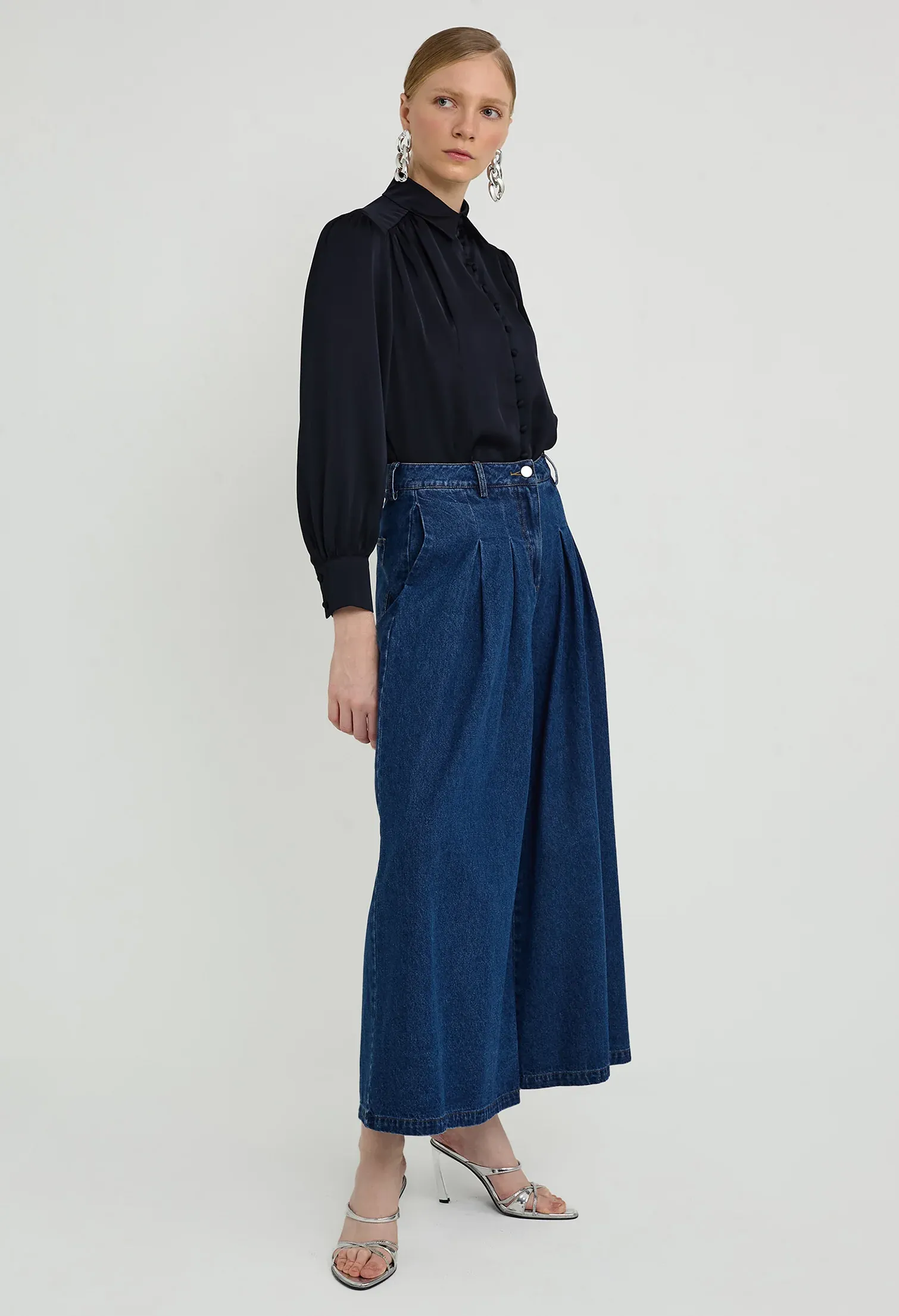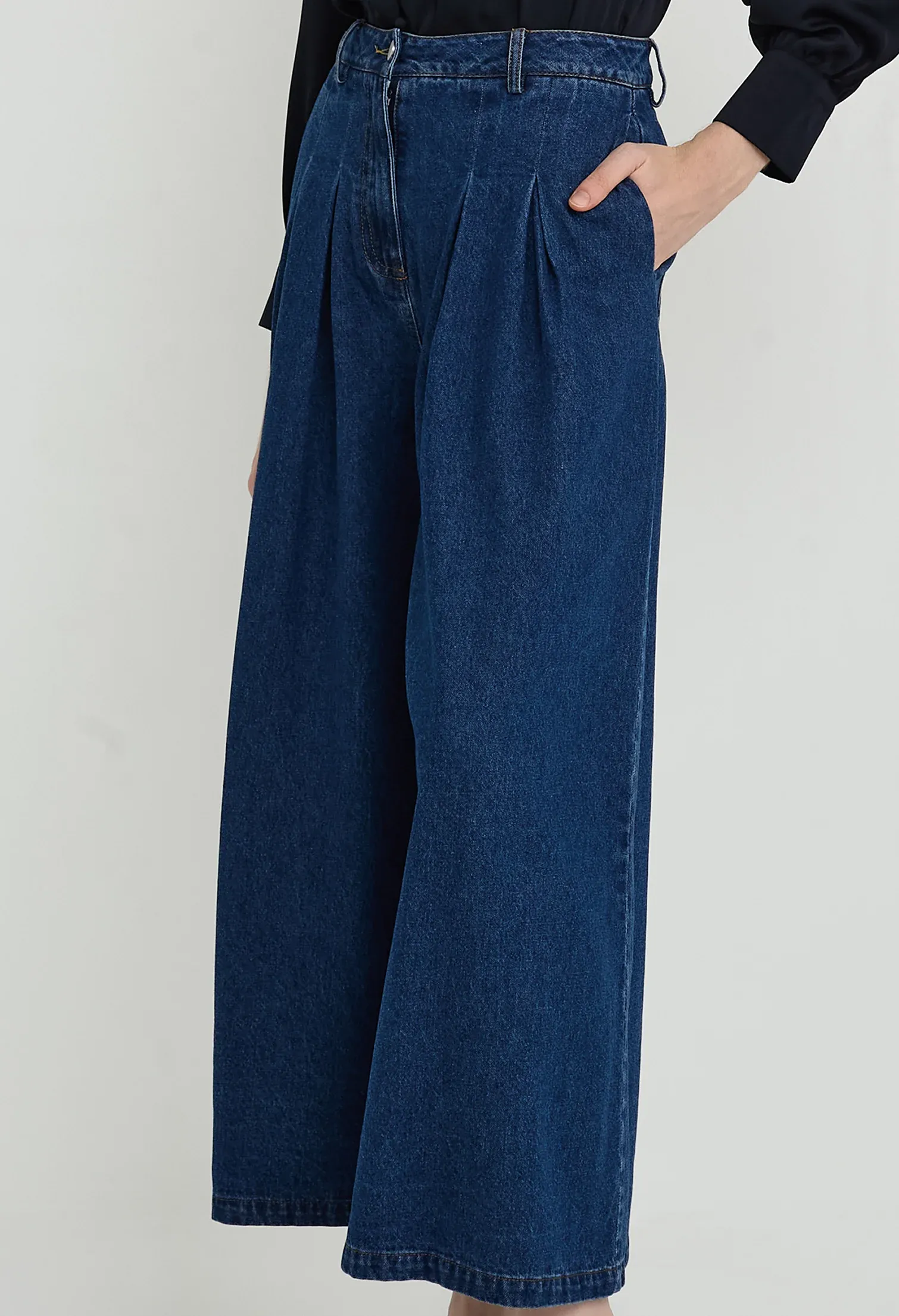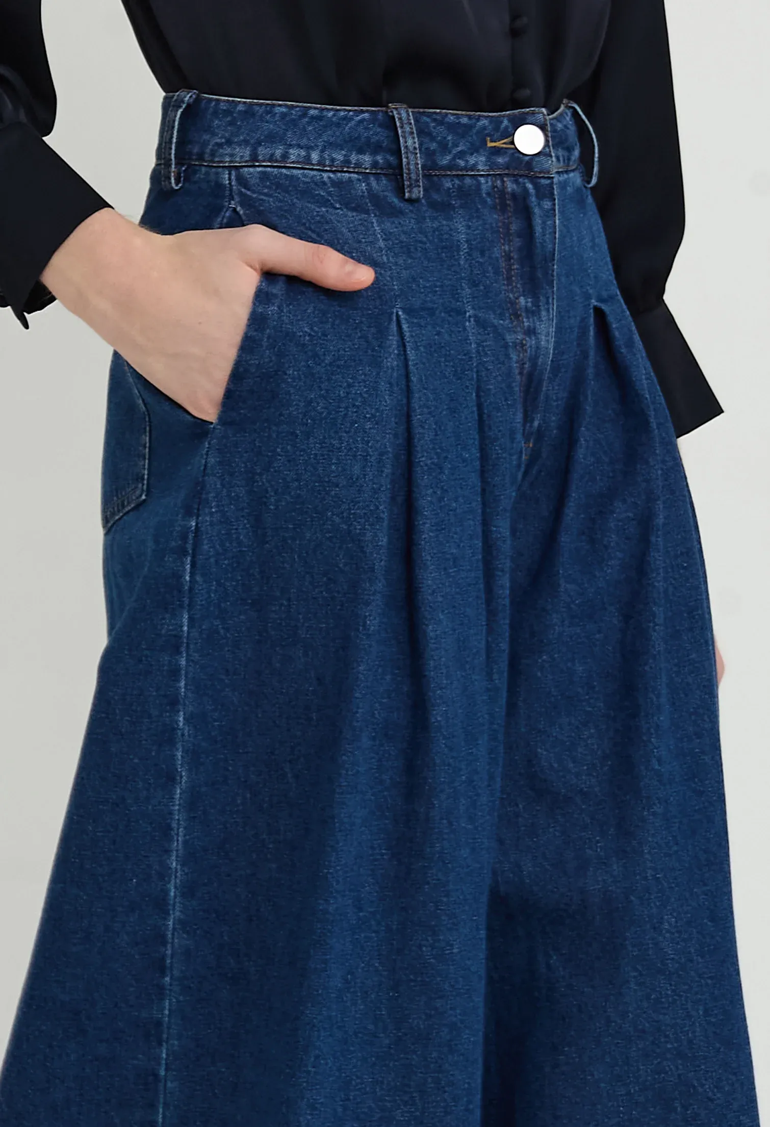 Home New Arrivals Pleated Wide Leg Denim Trousers