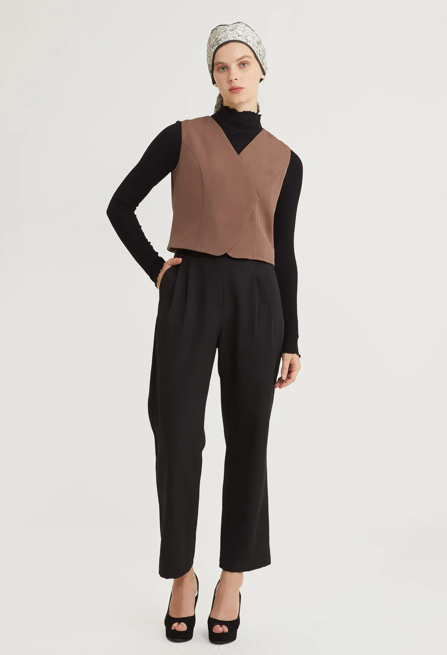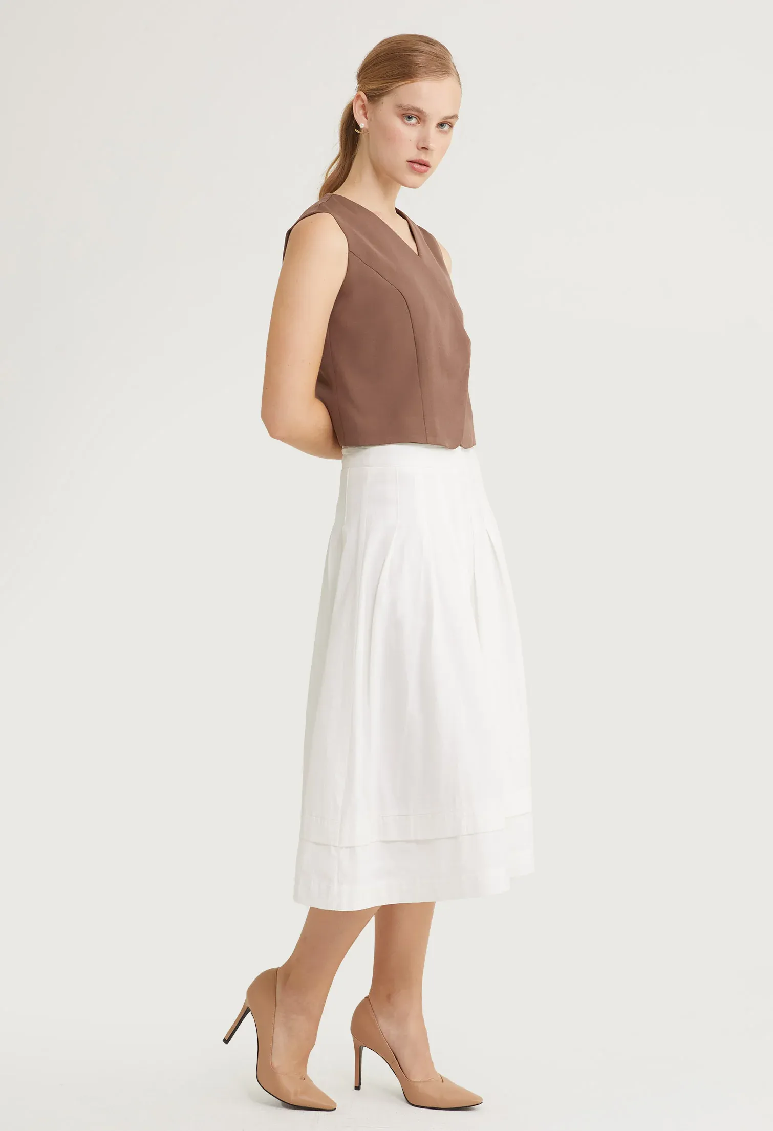 V-Neck Box Pleat Blouse