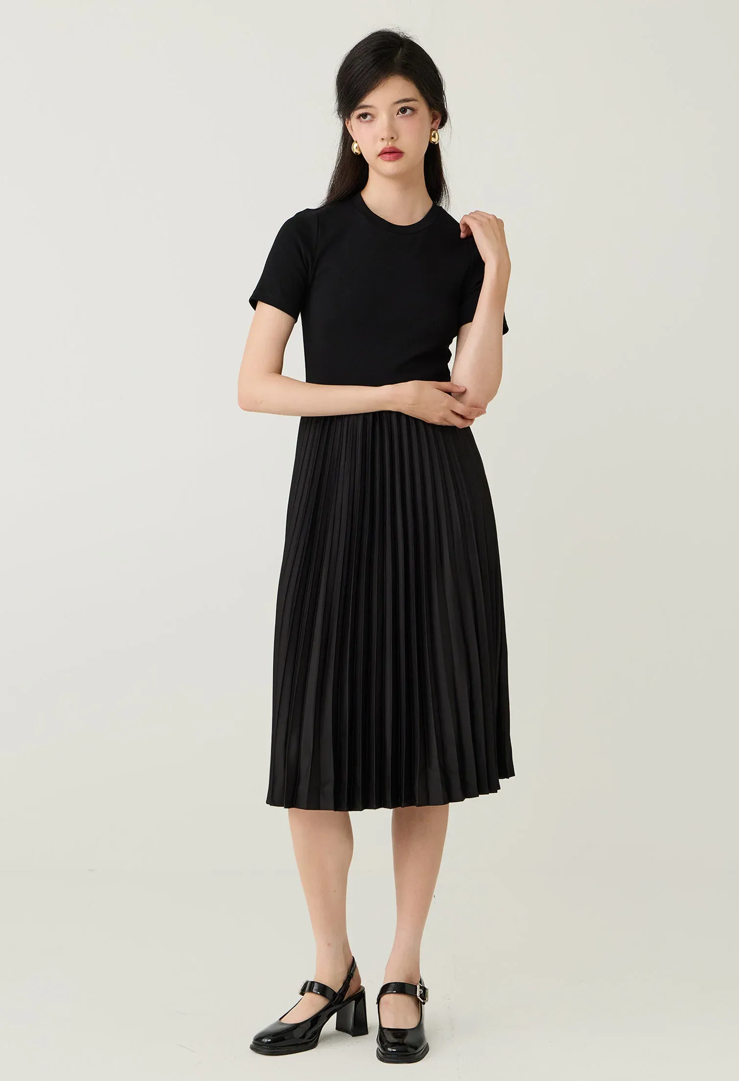 Home New Arrivals Short Sleeve Pleated Skirt Midi Dress